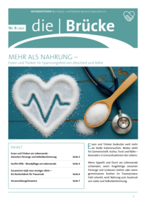 Essen und Trinken sind Grundbedürfnisse – und zugleich Ausdruck von Beziehung, Kultur und Zuwendung. In der aktuellen Ausgabe unserer Vereinszeitschrift „die Brücke“ widmen wir uns dem, was Nahrung über das bloße Sattwerden hinaus bedeuten kann: Nähe, Trost und Liebe – besonders in Zeiten des Abschieds.